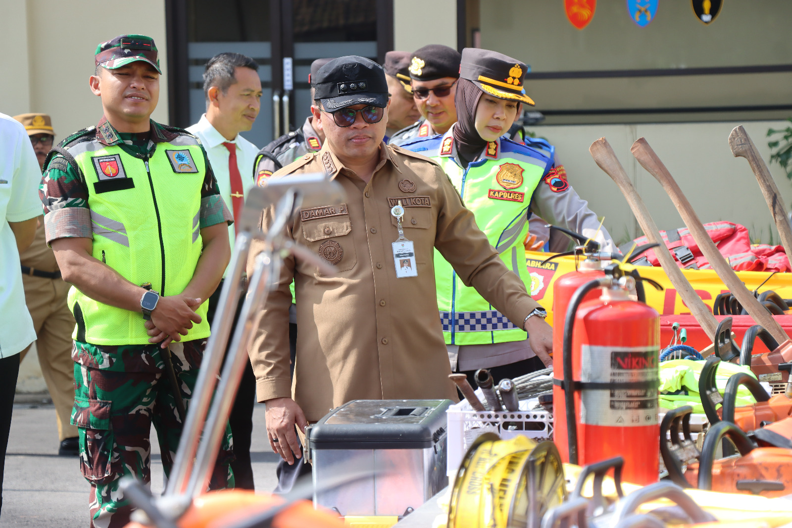 Turut digelar dalam apel itu, peralatan tanggap bencana serta kendaraan penanggulangan bencana yang dimiliki oleh masing-masing instansi, mulai dari mobil damkar, ambulans, kendaraan taktis, hingga peralatan evakuasi dan komunikasi lapangan.