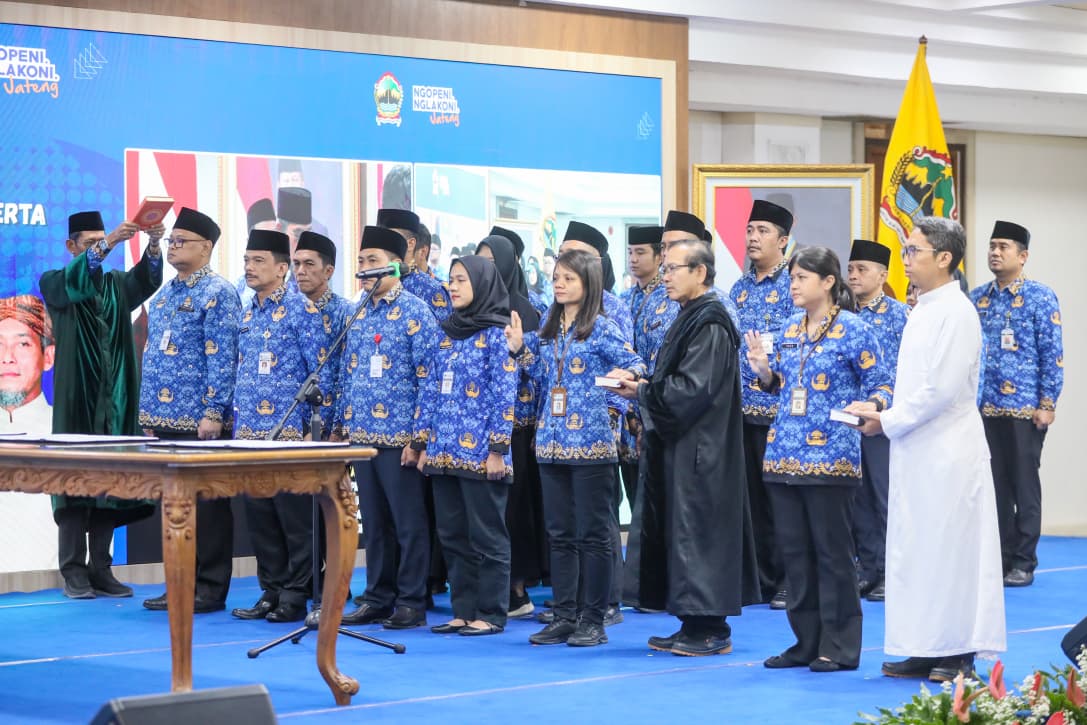 Jatengpress.com, Semarang – Sekretaris Daerah Provinsi Jawa Tengah, Sumarno, melantik Aparatur Sipil Negara (ASN) pada Jabatan Pimpinan Tinggi Pratama, Fungsional, dan Penyerahan Keputusan Penugasan Guru sebagai Kepala Sekolah. Sekda juga melakukan Pengangkatan Pegawai Pemerintah dengan Perjanjian Kerja di Lingkungan Pemerintah Provinsi Jateng.