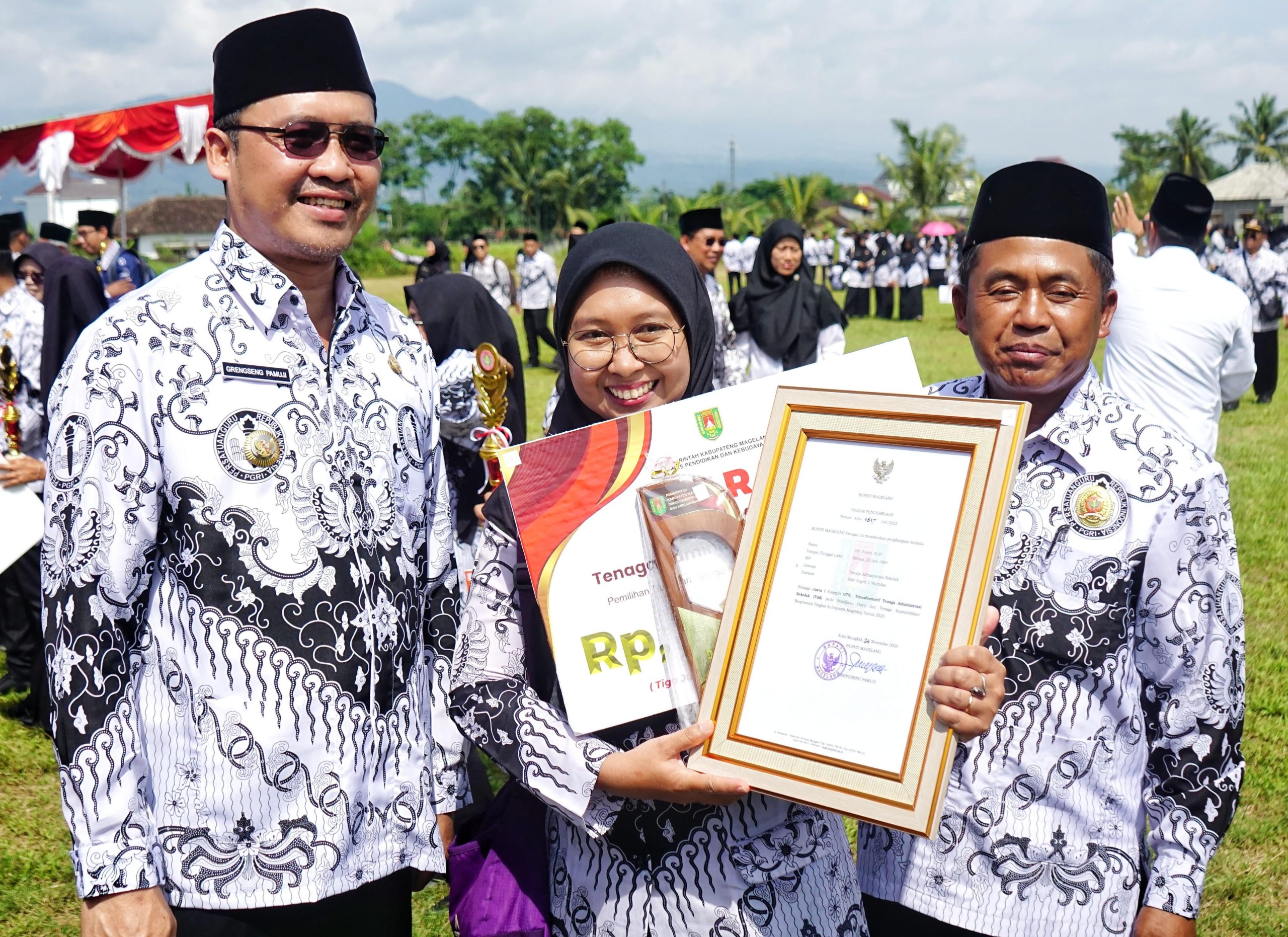 Bupati Magelang juga menyerahkan penghargaan kepada para juara pekan olahraga, seni dan pembelajaran (Porsenijar) PGRI tingkat Kabupaten Magelang. Kemudian para juara pemilihan guru dan tenaga pendidikan berprestasi tahun 2025. (TB)