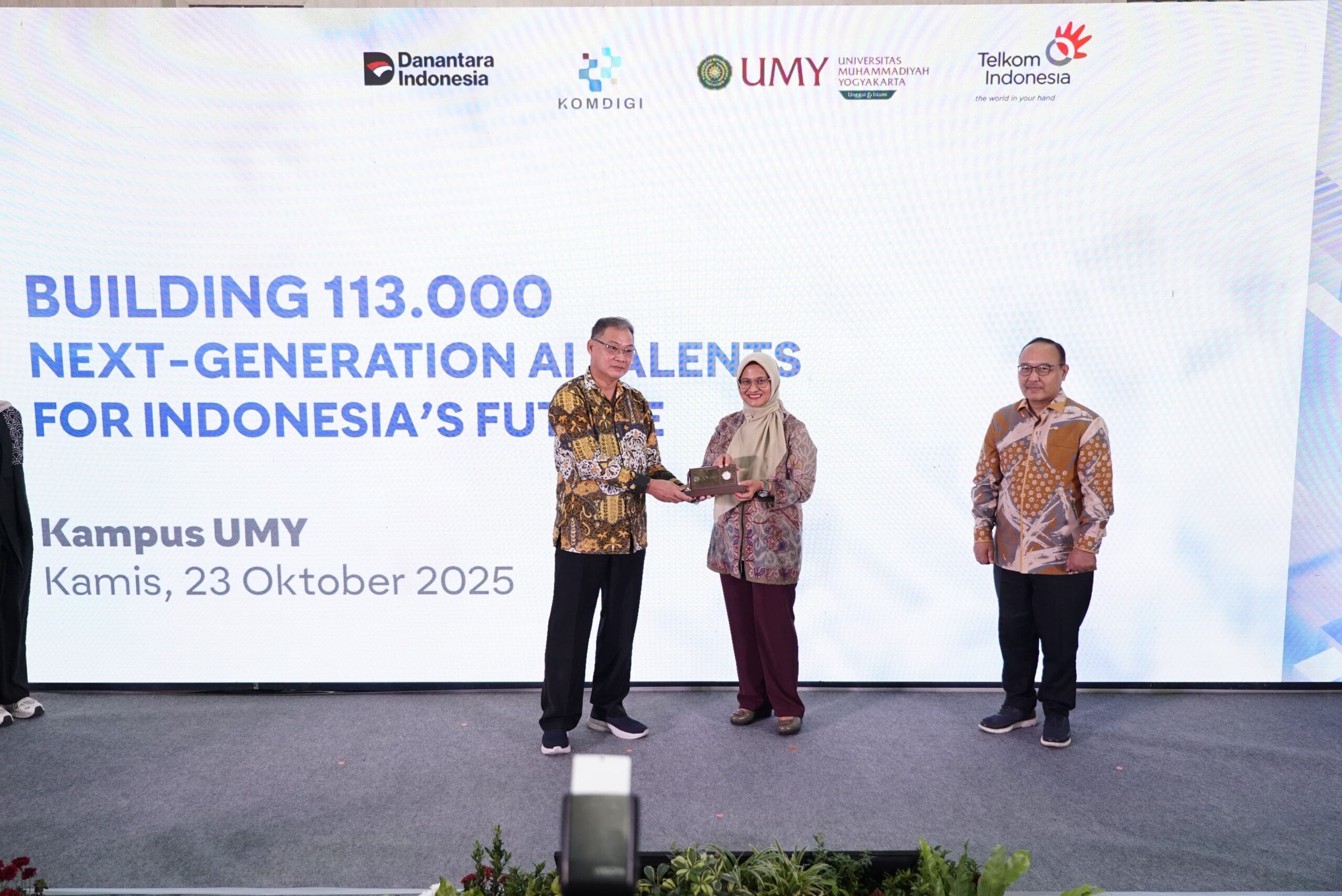 Acara ini dihadiri Direktur Utama Telkom Dian Siswarini, Rektor UMY Prof Dr Achmad Nurmandi, MSc, dan Kepala Badan Pengembangan Sumber Daya Manusia Kementerian Komdigi Bonifasius Wahyu Pudjianto.
