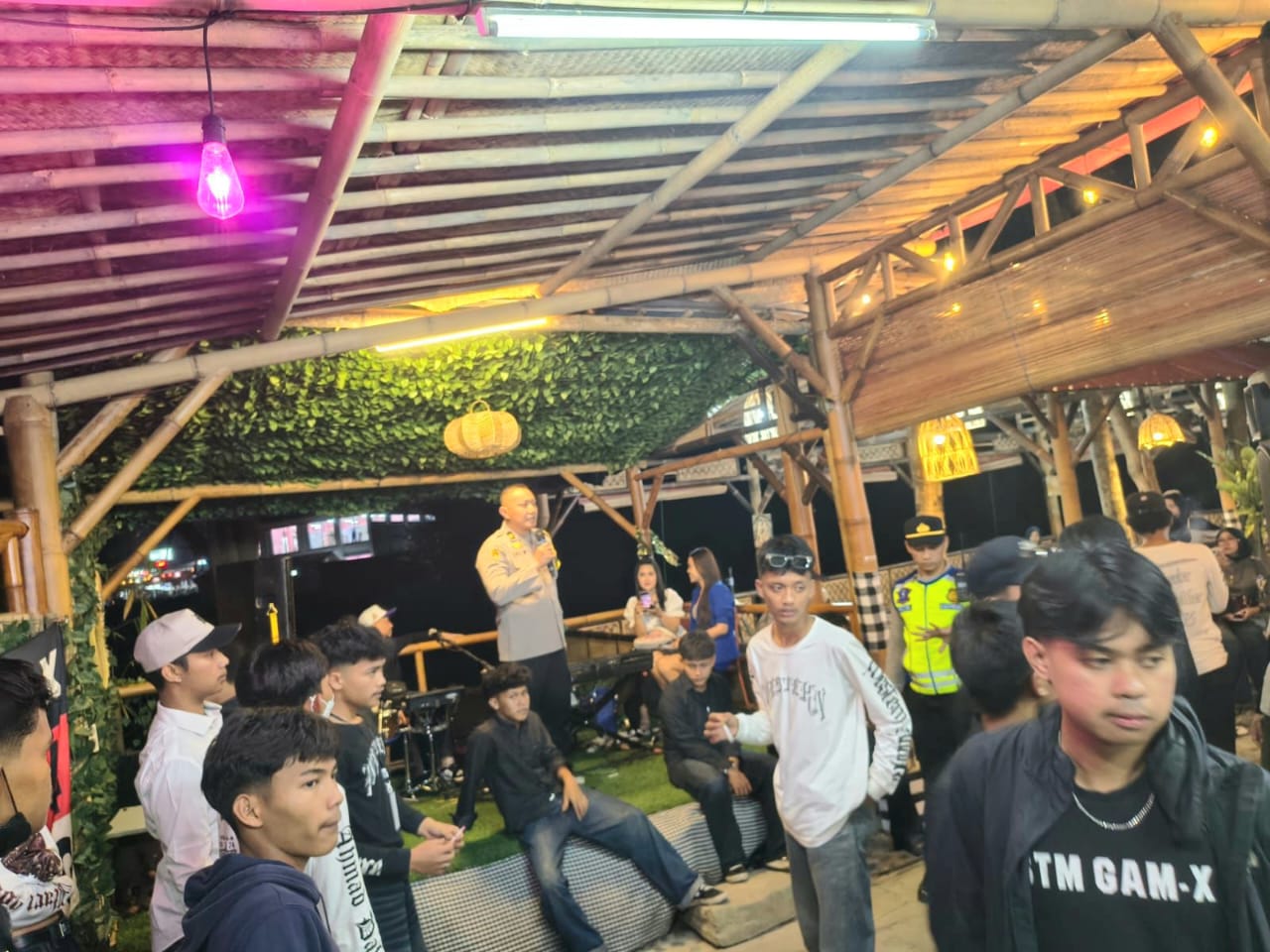 Sampai lokasi sekitar pukul 19.30 WIB, petugas langsung membubarkan acara secara humanis dan terukur. Selain itu, dilakukan pemeriksaan (sweeping) terhadap peserta dan kendaraan guna mengantisipasi adanya senjata tajam, miras, maupun barang berbahaya lainnya.