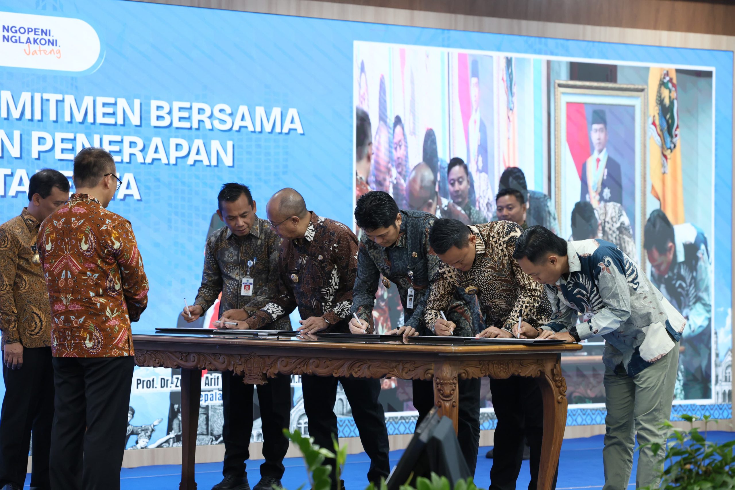 Penandatanganan komitmen tersebut dilakukan oleh Bupati Purbalingga Fahmi Muhammad Hanif yang didampingi Sekretaris Daerah serta Kepala BKPSDM Purbalingga, bersama para kepala daerah se-Jawa Tengah lainnya.