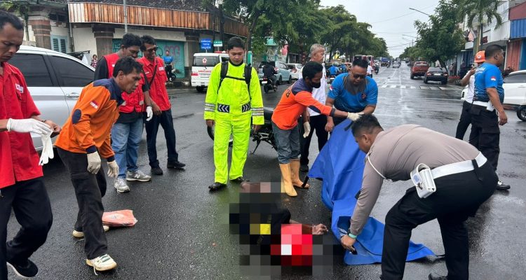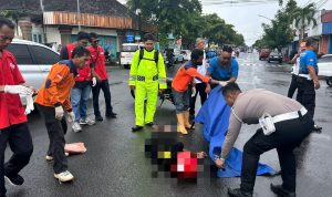 Jatengpress.com Wonogiri – Kecelakaan maut terjadi di jalan Raya Jatisrono – Slogohimo, tepatnya di depan pasar Jatisrono. Kecelakaan melibatkan pemotor dan pejalan kaki. Akibatnya, satu orang tewas dan satu luka